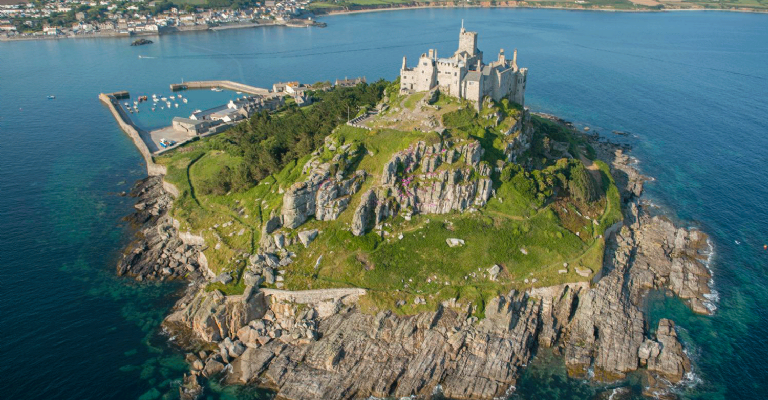 Imponente, custodiando la bahía se ubica la joya de la corona de Cornualles. Allí se grabó gran parte de la serie, en el asombroso castillo de la isla de St. Michael's Mount. Esta fortaleza, a la cual se puede llegar por un camino empedrado durante la marea baja y por un ferry durante la marea alta, está iluminada por la noche creando la misteriosa ilusión de que se encuentra flotando en el aire.