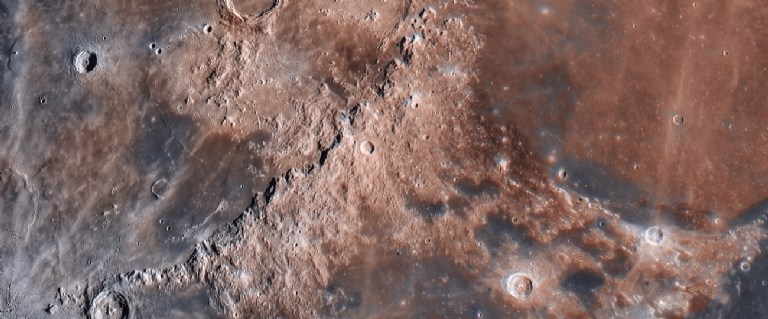 Lo más llamativo de la foto, además del increíble detalle, son los colores. Podemos ver zonas azuladas en el centro y tonos ocres bastante llamativos, que no se corresponden con los tonos grises que hemos visto en todas las fotos de la NASA, o los rover que han viajado a la Luna.