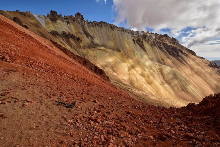 Esta formación montañosa también se encuentra teñida de multitud de tonalidades fruto de la combinación de minerales. Verdes, azules, morados, turquesas, fucsias, amarillos… Todos estos colores son los encargados de convertir este paisaje en uno de los más llamativos de Perú y del mundo. Lo más curioso de esta montaña es que hasta comienzos de los años 90 estuvo parcialmente rodeada de hielo.